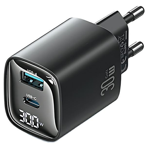 USAMS USB-C / USB-A Gyorstöltő Adapter 30W - Fekete (USA001440) mobiltelefon kellék 1 kép