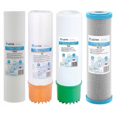 1 kép USTM 4 lépcsős szűrőkészlet vaseltávolításhoz / vízlágyításhoz 10" USTM vasas/kemény vízhez