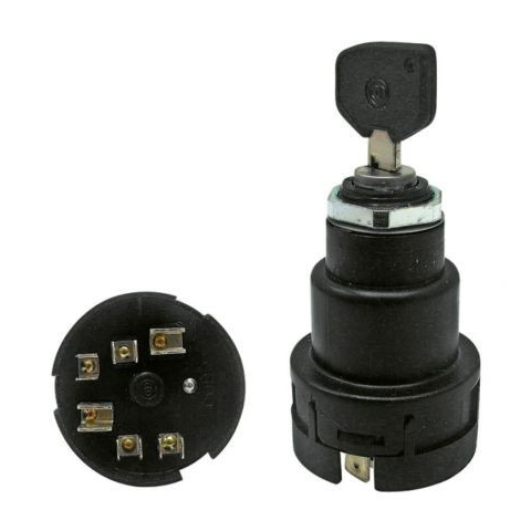Gyári cikkszámok: 30100800, 1021350 Kivitel: 12 V Lapos csúszósarus csatlakozóval Kapcsolóállás: 0 = ki, 1 = fogyasztók, 2 = izzítás, 3 = indítás Beépítési nyílás: 26 mm Az alábbi típusokhoz használható: 505, 605, 655, 705, 755, 805, 855, 905 Gyári cik