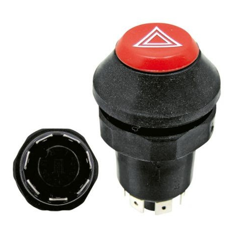 Gyári cikkszámok: 89520C91 Funkció: Vészvillogó nyomógombos kapcsoló Feszültség: 12 / 24 V Beépítési méret: Ø 30 mm Csatlakozás: 7 db 6,3 x 0,8 mm-es csúszósarus csatlakozó (L- R- 30- 30b- 49a- 15- 49) Az alábbi típusokhoz használható: 433, 533, 633, 733