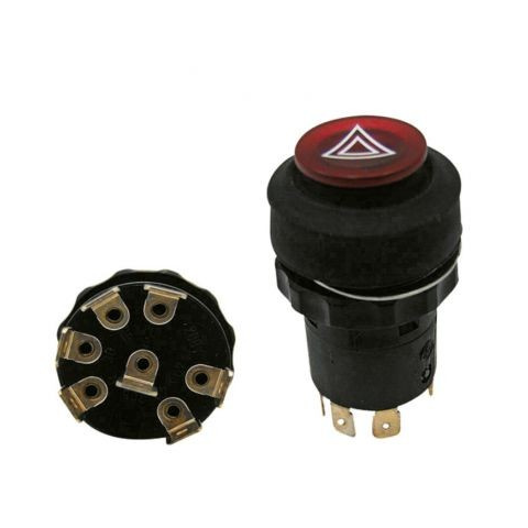 Gyári cikkszámok: AL32062 Nyomógombos működtetés Izzóval, piros gomb, vészvillogó szimbólummal Csatlakozókábel 7 db 6,3 x 0,8 mm-es lapos csúszósarus csatlakozóval, 30b nélkül Beépítési méret: 30 mm Az alábbi típusokhoz használható: 1040, 1140, 1350, 1550