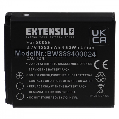 Műszaki adatok:Állapot: Új, utángyártott, ExtensiloAkkumulátor típusa: Li-IonKapacitás: 1250mAhFeszültség: 3.7VKiváló minőségű utángyártott akkumulátor Ricoh Caplio R50 típusú készülékekhez. Kompatibilis Modellek: Panasonic: Lumix: DMC-FX01 DMC-FX0