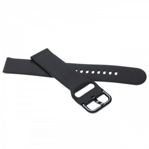 Kiváló minőségű óraszíj Samsung Galaxy SM-R500, Watch Active készülékekhez, új állapotú, utángyártott. Szíj Tulajdonságai: Szín: Fekete Anyaga: szilikon Hosszúság: 10cm + 8.5cm Szélesség: 20mm