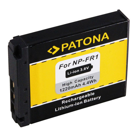 Műszaki adatok: Állapot: Új, utángyártott, PATONA Akkumulátor típusa: Li-Ion Kapacitás: 1220mAh Feszültség: 3.6V Kiváló minőségű utángyártott akkumulátor Sony NP-FR1 - 1220mAh (3.6V) típusú készülékekhez. Kompatibilis Modellek: Sony: Cy