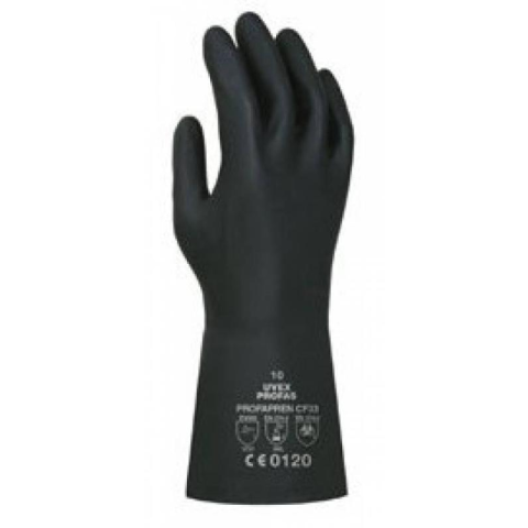 UVEX PROFAPREN VEGYSZERÁLLÓ POLIKLOROPRÉN KÉK KESZTYU:vegyszerálló, szilikonmentes, sötétkék polikloroprén védőkesztyű pamutbolyhozott belsővel0,75 mm vastag, 33 cm hosszú, nagy szakítószilárdságú ugyanakkor rugalmas anyaghatékony és széles spektrumú vegyszerálló tulajdonságok (pl. metilamin 40%, etil-metil keton/butanon, propion