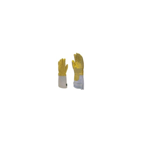 Színbőr tűzoltókesztyű, h- álló aramidszálas közbélés és pamut bels- bélés Cikkszám: 59880 - puha színmarhabőr tenyér, kézhát ésartériavédő - tépőzárral állítható marhahasíték mandzsetta - gumizott kézhát - hőálló aramidszálas közbélés és pamut bel