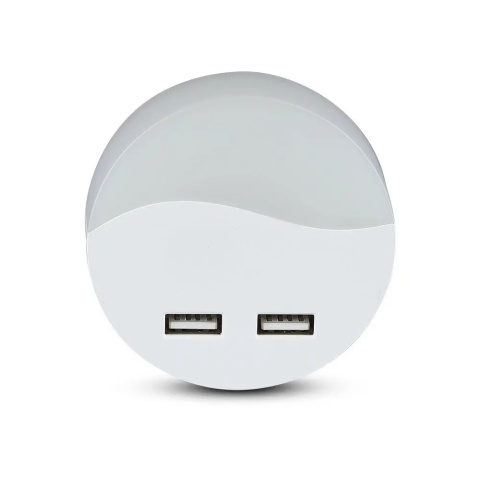 Alkonykapcsolós, 2db USB csatlakozós, éjjeli fény, a sötétben való tájékozódás megkönnyítésére.