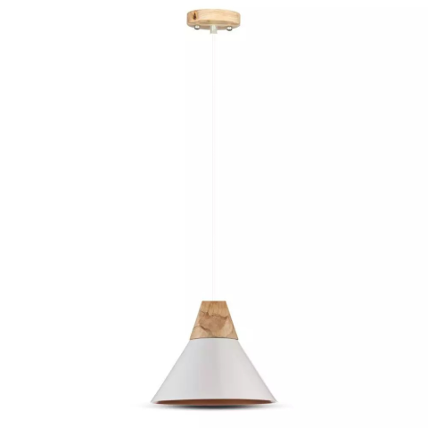 1 kép V-tac fehér alumínium+fa csillár, függeszték E27 foglalattal - SKU 3756