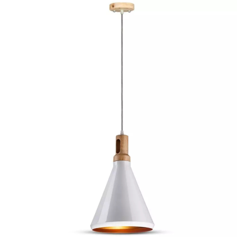 1 kép V-tac fehér fabetétes fém csillár, függeszték E27 foglalattal - SKU 3761