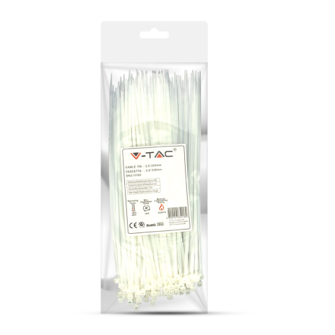 1 kép V-tac fehér, műanyag gyorskötöző 2.5x200mm, 100db/csomag - SKU 11163