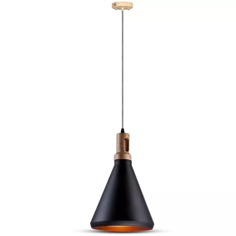1 kép V-tac fekete fabetétes fém csillár, függeszték E27 foglalattal - SKU 3762