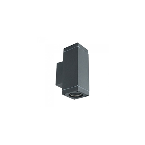 IP44-es kültéri oldalfali lámpatest GU10 foglalattal: szögletes fali lámpa, amely két irányba világít. A felfelé és lefelé világító lámpatesttel esztétikusan kiemelhetjük a homlokzat struktúráját, burkolatát is, de a közlekedéshez használt fal melletti útvonalak megvilágítására is alkalmas.