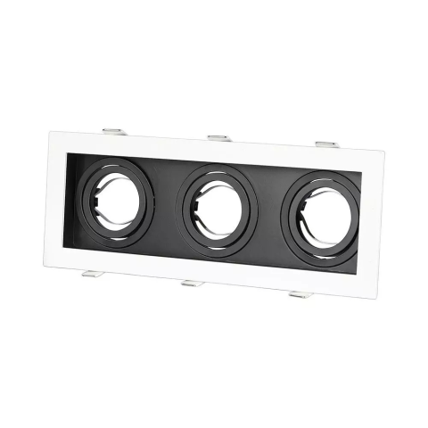 1 kép V-tac GU10 LED 3 foglalatos spotlámpa keret, fehér billenthető lámpatest - SKU 8878