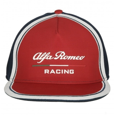 2019-es Alfa Romeo flatbrim sapka az Alfa Romeo termékek gyártójától.A csapat sapka, mely minden Alfa Romeo szurkoló szívét megdobogtatja 2019-ben. A sapka hátulján a kék szín dominál, míg elöl a piros kerül előtérbe. A kettőt pedig a fehér színű csík vál