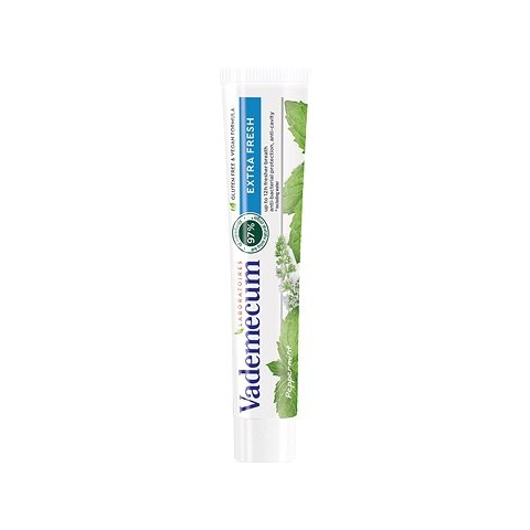 Fogkrém - zománcvédelem, fluoriddal, mentolos ízű, 75 ml kiszerelésben kapható A Vademecum paszta biztosítja a fogak és az ínyek legjobb gondozását. Az egyedülálló gyógynövényes mentakivonattal ellátott receptnek köszönhetően az Extra Fresh fogrkém tartósan friss lehelle