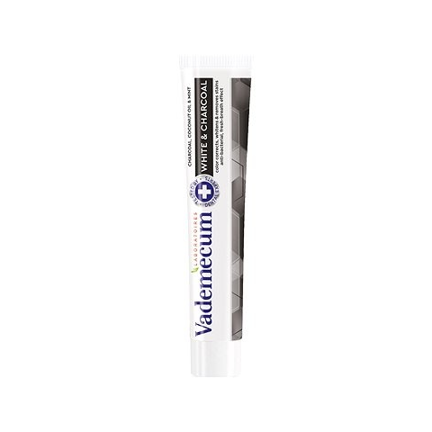 Fogkrém - fehérítő, fluoriddal, mentolos ízű, 75 ml kiszerelésben kapható A Vademecum fogkrémmel kiváló ápolást biztosíthatsz fogaid és ínyed számára. Az aktív szenet, mentát és kókuszolajat tartalmazó egyedi receptúrának köszönhetően a White&Charcoal fogkrém könnyedén