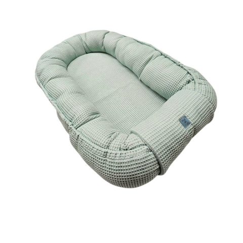 Vaganza babafészek puha waffle anyagból. Ajánlott, kislányoknak és kisfiúknak, 0 hónapos kortól. Anyagösszetétel: Külső-belső huzat: 100% waffle Perem töltet: antiallergén vatelin Fekvő felület betét: lapszivacs Mérete: Fekvő felület: 28 x 68 cm Külső