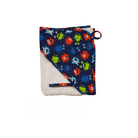 Vaganza Fürdőlepedő, fürdetőkesztyűvel Mérete: 110 x110 cm Anyaga: 100% pamut Mintás kapucni
