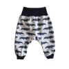 Nyárra ideális választás ez a vékonyabb pamut anyagból készült, igényes nadrág kicsiknek nagyoknak egyaránt. Jó légáteresztő anyagának köszönhetően a legforróbb nyári napokon sem izzad bele a baba. Derekát, valamint a lábszárát rugalmas passzé anyag tes