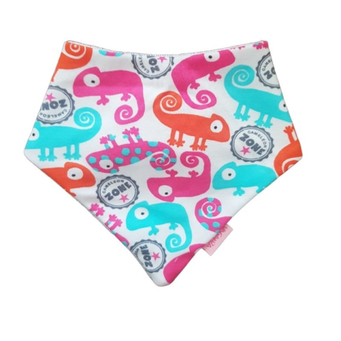 Vaganza Háromszög alakú nyálkendő, mintás Patenttal záródik, állítási lehetőséggel. Az egyik oldala frottír, a másik pamut. Anyagában mintás.