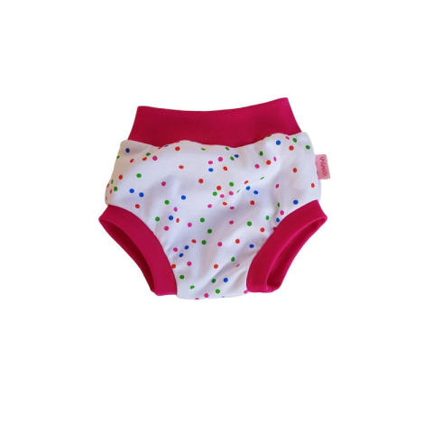 1 kép Vaganza Pelenkára húzható bugyi – Színes Pöttyök/Piros Szegély/62