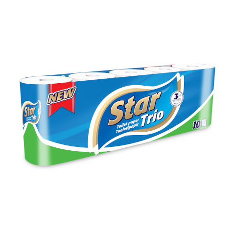 Star Trio WC papír 10 tekercs 3 réteg A Star Trio WC papír 10 tekercs, 3 réteg minden napra kényelmes megoldást kínál. Puha érzet és megbízható erősség kombinációja, amely gondoskodik a tisztaságról családi és irodai környezetben egyaránt. Fő jellem