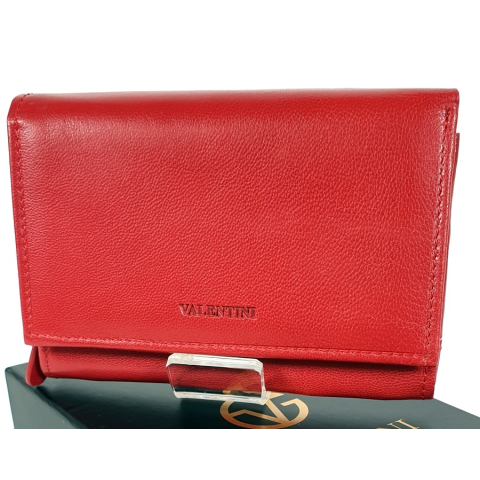 Valentini márkájú, közepes méretű, praktikusan használható női pénz és irattartó. Puha tapintású, letisztult stílusú, piros selyem fényű marhabőrből, diszkrét Valentini márkanév nyomattal ...