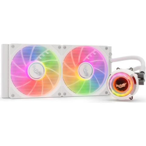 Kompakt univerzális vízhűtés 2 darab 140mm-es vezérelhető ARGB világítású és PWM sebesség szabályzású ventilátorral, 280mm-es radiátorral és szintén vezérelhető ARGB világítású CPU vízhűtés blokkal...