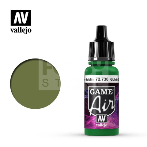 Vallejo Game Air Goblin Green akrilfesték 72730V A Vallejo Game Air széria kifejezetten airbrush-hoz lett kifejlesztve. Mattra száradó akrilfesték, legtöbb színe megegyezik a Game Color range-el, így bátran használhatjuk ugyanazt a színt airbrush-al és e