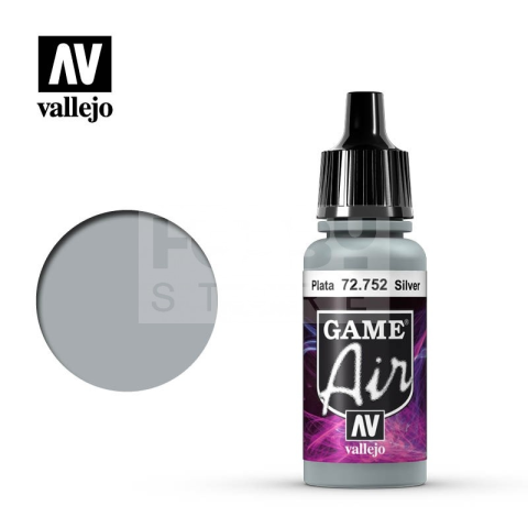 Vallejo Game Air Silver akrilfesték 72752V A Vallejo Game Air széria kifejezetten airbrush-hoz lett kifejlesztve. Mattra száradó akrilfesték, legtöbb színe megegyezik a Game Color range-el, így bátran használhatjuk ugyanazt a színt airbrush-al és ecsette
