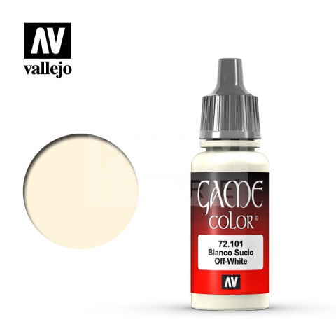 Vallejo Game Color Off White akrilfesték 72101 Magas pigmenttartalmú vízbázisú akrilfesték ecsettel történő használatra. A Vallejo Game Color festékek mindegyikét fantáziafigurákra és dioráma készítésre szakosodott modellfestőkkel fejlesztették ki. A Ga