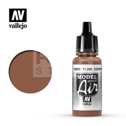 Vallejo Model Air Copper akrilfesték 71068V A Vallejo Model Air széria mattra száradó akrilfesték airbrush (szórópisztoly) használathoz lett kifejlesztve. A színválaszték a közelmúltban használt katonai színek legteljesebb választékát tartalmazza, beleér