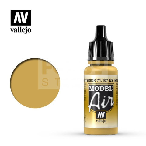 Vallejo Model Air US Interior Yellow akrilfesték 71107V A Vallejo Model Air széria mattra száradó akrilfesték airbrush (szórópisztoly) használathoz lett kifejlesztve. A színválaszték a közelmúltban használt katonai színek legteljesebb választékát tartalm