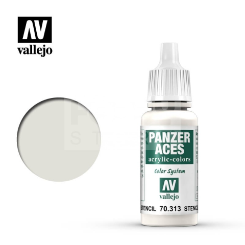 Vallejo Panzer Aces Stencil akrilfesték 17 ml 70313V A Vallejo Panzer Aces széria matt száradó akrilfesték család 17 ml-es kiszerelésben. A színek mindegyikét az Euromodellisimo szakértői csapat segítségével fejlesztették ki, hogy a modellezők gyors és p