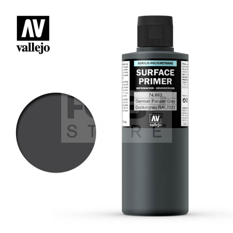 Vallejo Surface Primer Ger. Panzer Grey alapozófesték 200ml 74603V Mattra száradó akril alapozófesték. A Vallejo Surface Primerek számos árnyalatban kaphatók. Leggyakrabban makettek, modellek, miniatűr figurák, társasjáték figurák felületének előkészítés