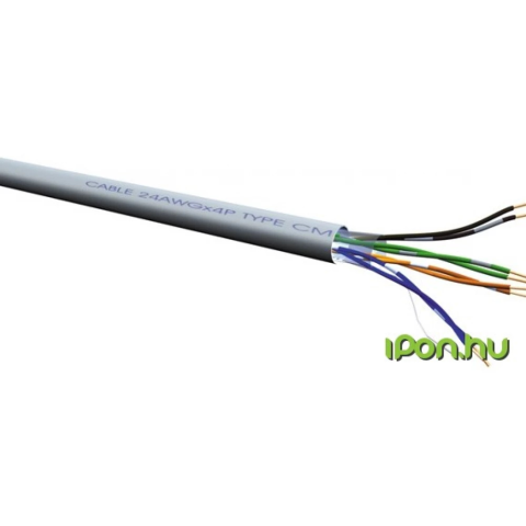 UTP CAT6 fali kábel, 305m. - Strukturált épületen belüli hálózatokhoz - Impedancia: 100 W - 3P hitelesített - Szín: Szürke - Szerkezet: 8 tömör réz vezeték AWG24