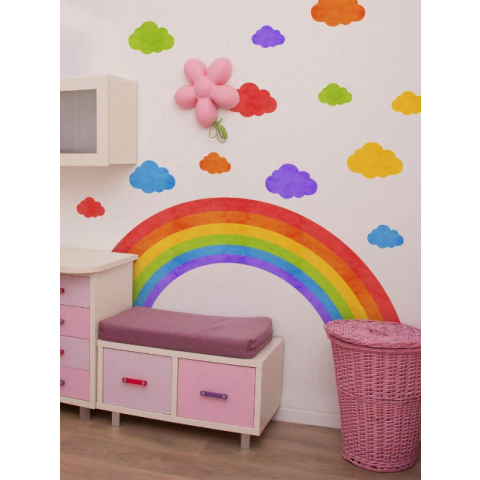 Díszítsd a gyerekszobát ezzel a színpompás szivárvány és felhő motívumos falmatricával!