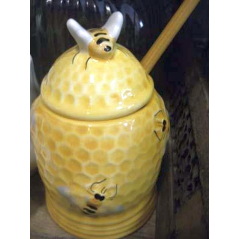 1 kép Vanilia Kerámia Méhecskés méztartó mézcsurgatóval,kerámia,kézzel festett-2,5dl