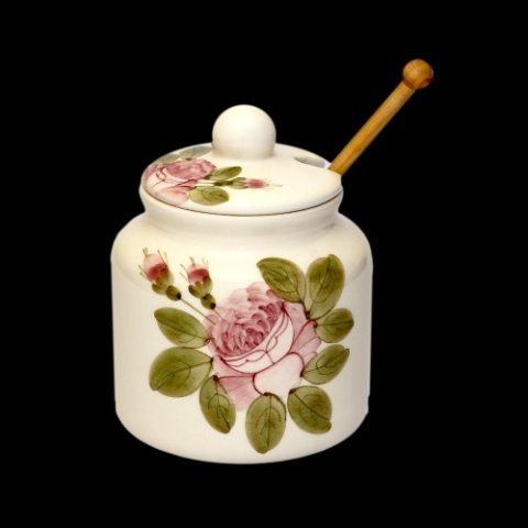 1 kép Vanilia Kerámia Romantik rózsás méztartó közepes,csurgatóval,kerámia,kézzel festett-7,5dl