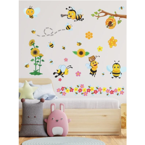 Ez az aranyos méhecskéket ábrázoló falmatrica pezsdítő hangulatot kölcsönöz a gyerekszobának.