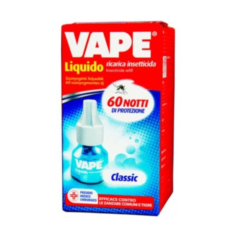 36ml A Vape elektromos készülékhez használható szúnyogirtó folyadék, mely zárt térben szúnyogok elpusztítására és elriasztására alkalmas. Összetevők Hatóanyag: 1,33 g pralletrin, Etoc oldószer és parfüm összesen 100 g Biztonsági információk A