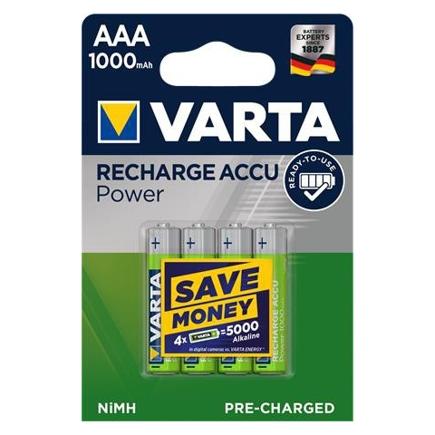 1 kép    Varta Elem mikro tölthető Varta `Power` AAA előtöltött 4x1000 mAh