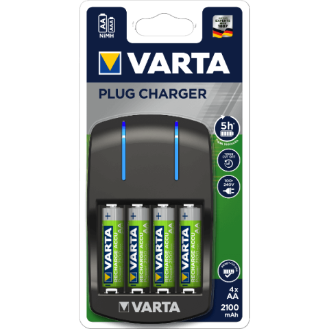 Elemtöltő, akku Plug töltő + 4 db AA 2100 mAH Varta - 35042 - Elemtöltők -