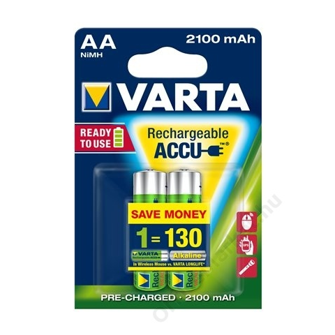 2 kép    Varta Tölthető elem, AA ceruza, 2x2100 mAh, előtöltött, VARTA Power (VAKU01)