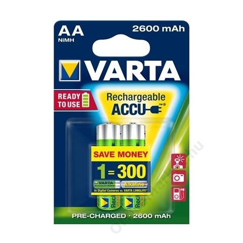 Tölthető elem, AA ceruza, 2x2600 mAh, előtöltött, VARTA Power (VAKU11) - a cellába zárt energia, hogy a fotózás és a zenehallgatás öröme soha ne érjen véget - az ideális választás a nagy teljesítményü digitális készülékekhez Gyártó/első EU forgalmaz