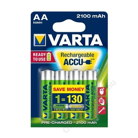 2 kép    Varta Tölthető elem, AA ceruza, 4x2100 mAh, előtöltött, VARTA Power (VAKU02)