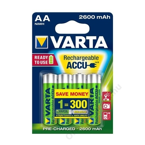 2 kép    Varta Tölthető elem, AA ceruza, 4x2600 mAh, előtöltött, VARTA Power (VAKU12)