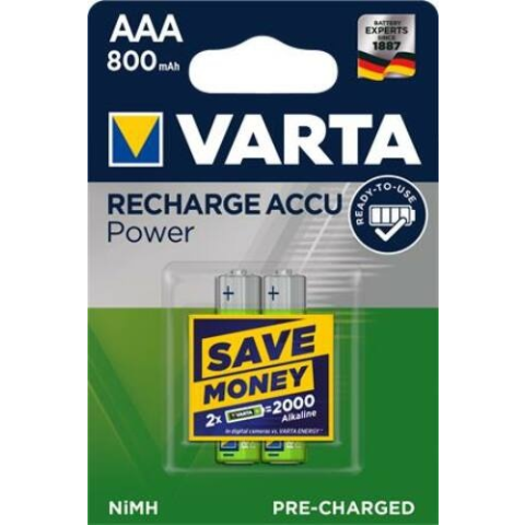 2 kép    Varta Tölthető elem, AAA mikro, 2x800 mAh, előtöltött, VARTA "Power"