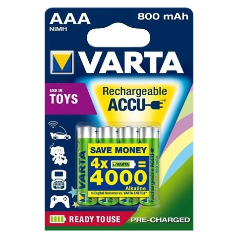 1 kép    Varta Tölthető elem, AAA mikro, újrahasznosított, 4x800 mAh, VARTA