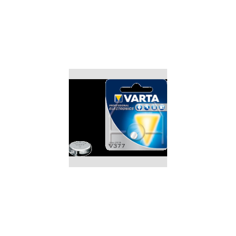 A Varta V377 ezüstoxid gombelem, mely nagy energiát biztosít személygépkocsi- indítókulcsok, számológépek, órák és egyéb elektronikus felhasználási területek részére. Feszültség: 1.55 V Rendszer: Ezüst (Zn/Ag2O) Kapacitás: 24 mAh Magasság: 2.6 mm Átmérő: 6.8 mm Tömeg: 0.4 g
